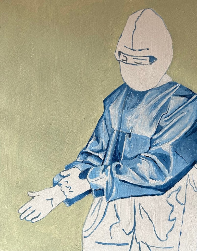 I’m actually quite excited about my new painting series. It feels good to have direction again and something I want to do. I’m painting people in PPE during various outbreaks, epidemics, and pandemics. Right now I’m focusing on a nurse during a Marburg outbreak in South Africa in 1975.