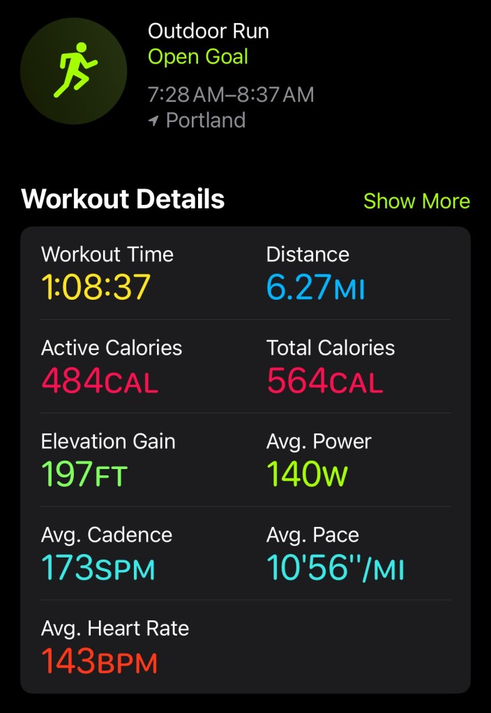I ran 6 miles today. After I do my 10 mile run tomorrow it will have been 22 miles for the week which is where I want to be. I was going to start resistance training but I injured myself at the race last week and needed to wait until the bruising on my knees got better and now it’s too close to the next race to begin. That is in case I get really sore from doing weights for the first time and can’t run for awhile afterward.