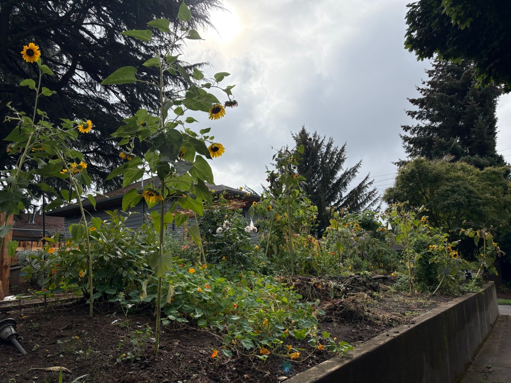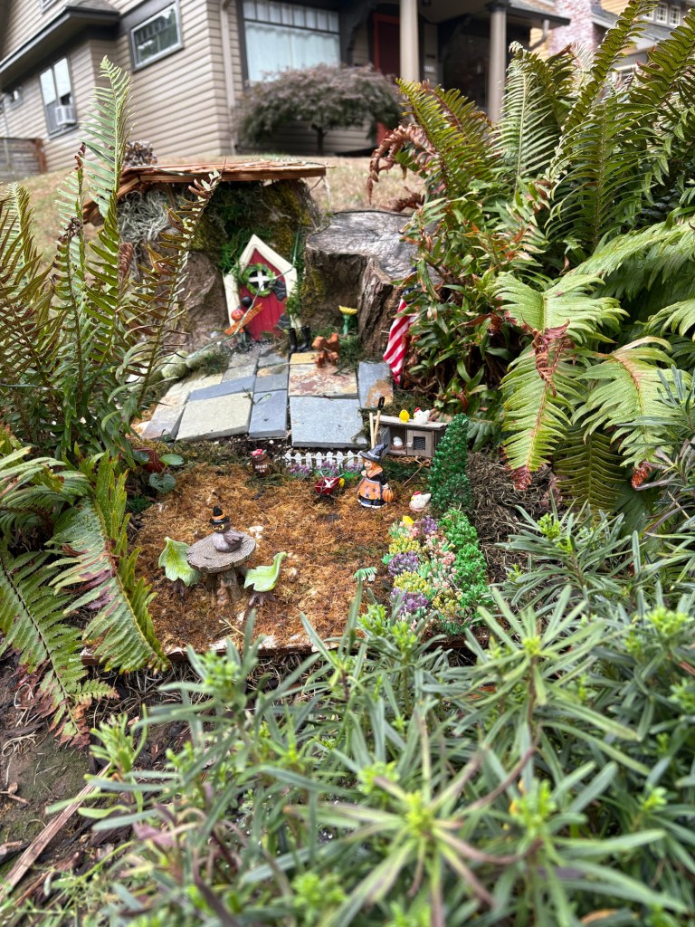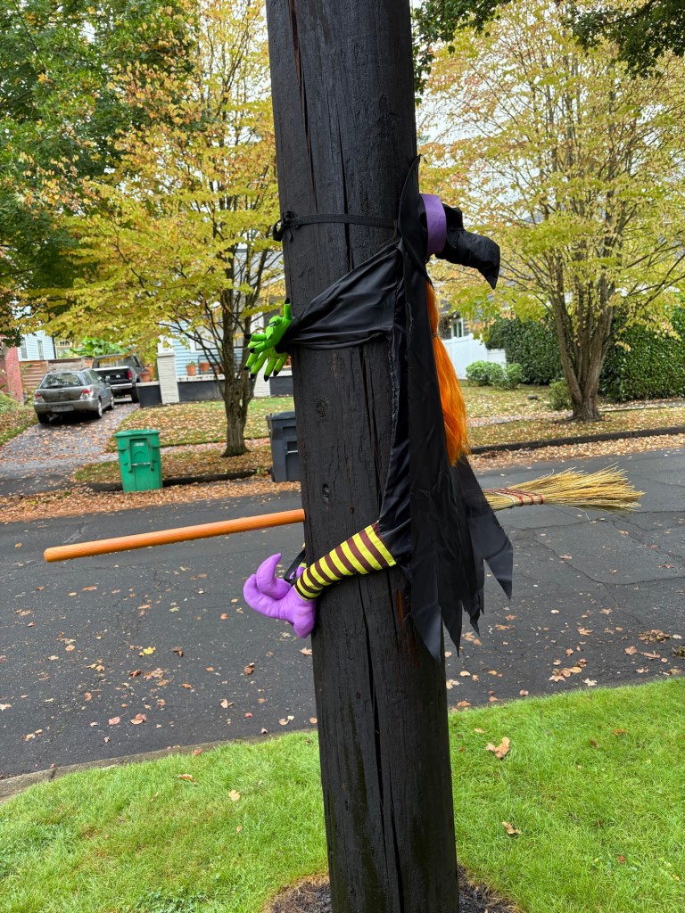 I’ve started taking pictures when I’m out on my walk with Margot to share on here. Today I saw a big mushroom, a little fairy house, trees with the leaves starting to change, a whole garden of sunflowers, and a witch someone had attached to a utility pole.