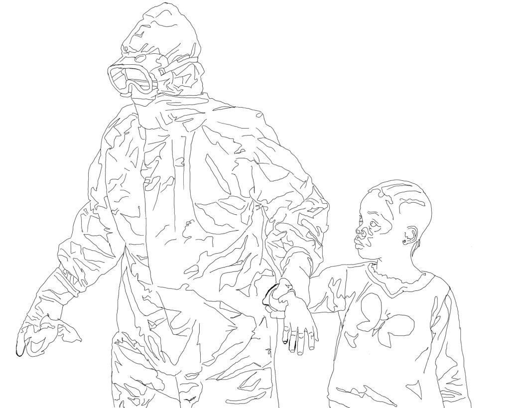 I decided not to do the Bosch study quite yet (I might start it when I’m out of town and can’t paint with physical materials). It just wasn’t inspiring me enough and I think I’ve had a long enough break from working on my last piece that I feel ready for a new one. This image is going to be from the 2014 Ebola epidemic. It’s a particularly hard picture to paint so it will really be a challenge. I have never painted African skin before and the hazmat suit is especially wrinkly. It’s only going to be the two front figures, I’m not doing the one in the back.