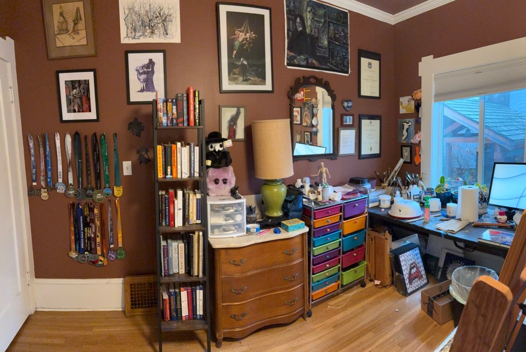 To take a break from this painting I am going to do a super duper thorough decluttering and organization of my art studio. Because it is so filled with stuff from wall to wall, I do not want cleaners in it so I will have to do it myself. I am going to start with one corner and work my way through it, going through every drawer and getting rid of things I haven’t used in a long time. My flat file needs to be cleared of old art I no longer want. A lot of stuff that is piling up can be moved to the basement (which also needs a decluttering though I avoid it due to spiders). I’ll post before and after pictures.