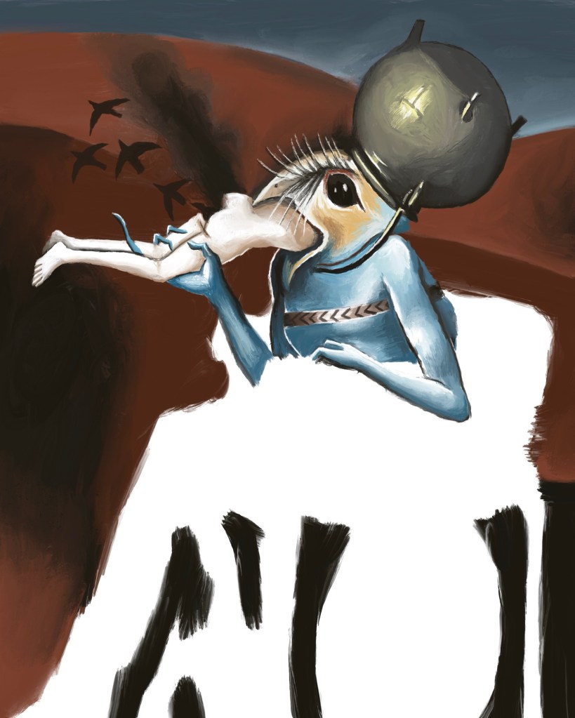 Today I worked on the body of the bird demon. For those who are not familiar with art history, Hieronymus Bosch was a Dutch painter who lived from 1450 – 1516. He painted bizarre religious scenes as religious work was the majority of what was painted in Europe at that point. This particular image is from his triptych The Garden of Earthly Delights. It’s supposed to be in hell. I’ll attach a photo of the original so you can see what it looked like.