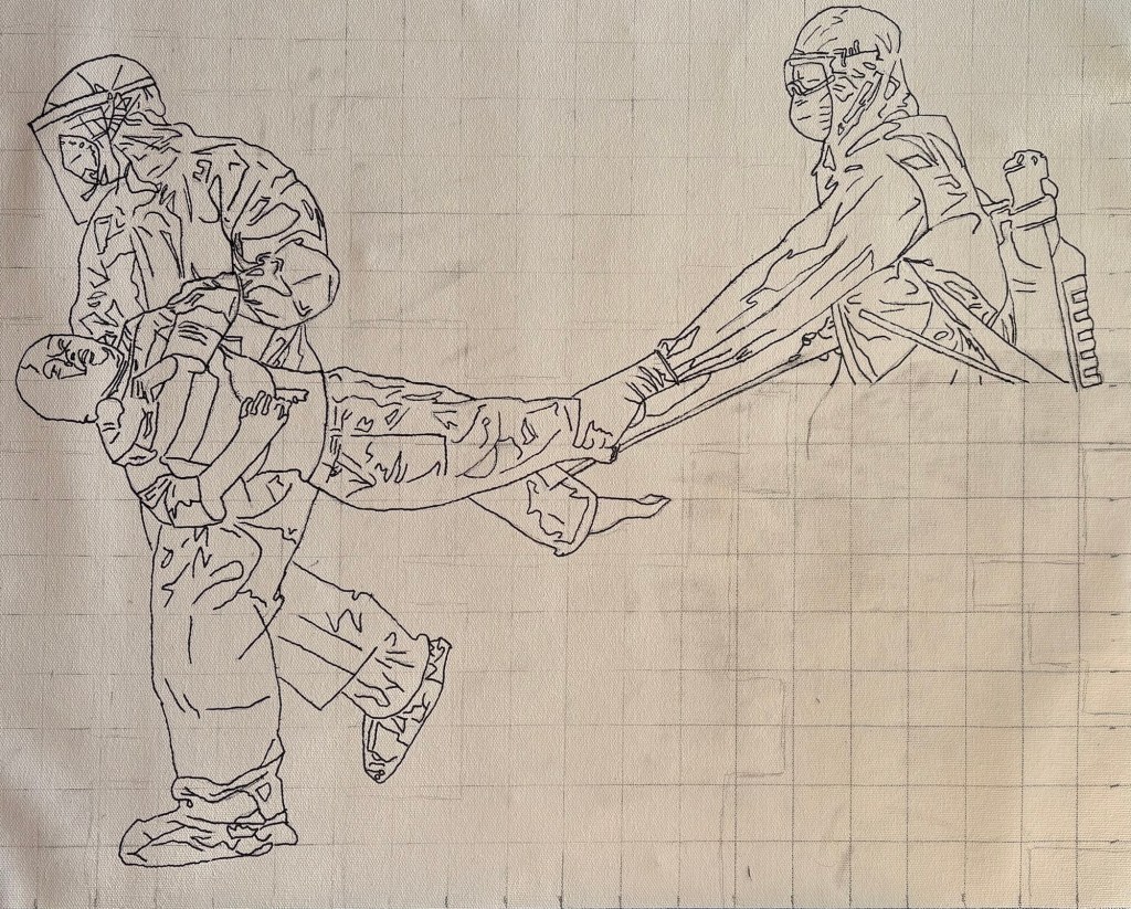 Today I took a Ritalin and just powered through most of the grid drawing on the canvas. I needed to get as much as possible all in one go because it’s like ripping off a bandaid, the longer you take, the worse the pain and I truly find this part of the painting process painful. If I draw it out over many days it just makes me super anxious and prone to procrastination. Wednesday I will finish this drawing once and for all. I only have the legs of the right hand figure left which should be pretty easy.