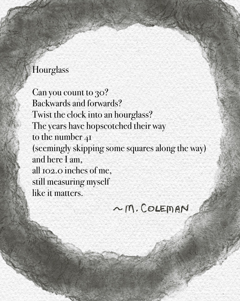I wrote a little bit today. Nothing amazing. I just took an existing poem of mine that I didn’t like very much and added to it, fleshed it out a bit. The end result is okay. It’s a little bit about vanity in middle age.