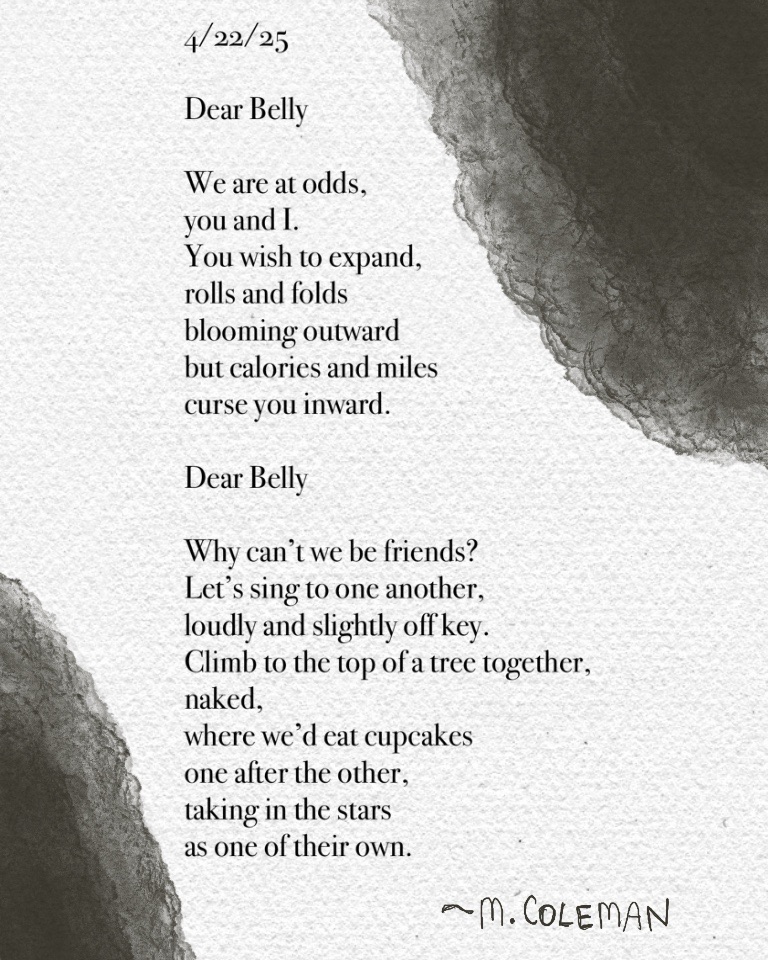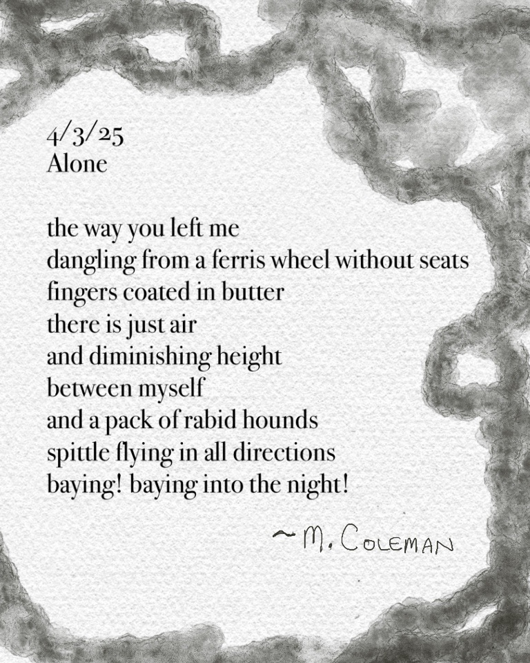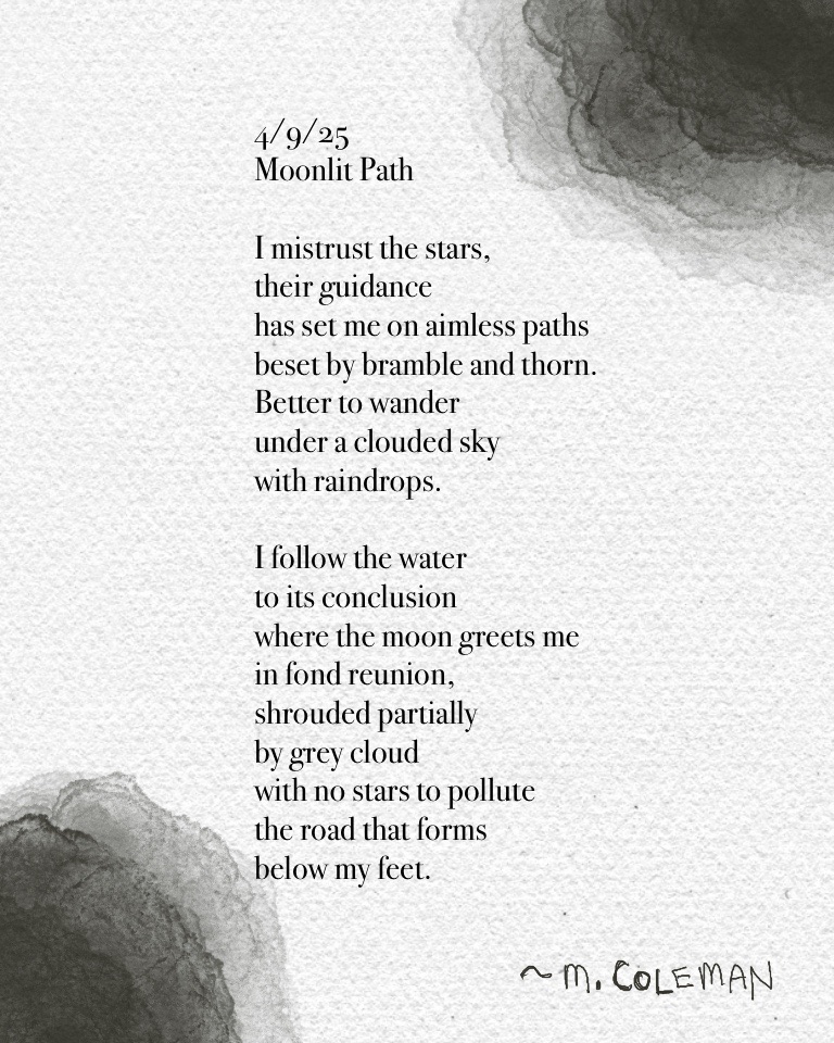 In March I wrote an entire poem every single day but this April I’m being a little more gentle with myself and just trying to complete something every few days. Working a little bit each day, but not pressuring myself to finish something.
