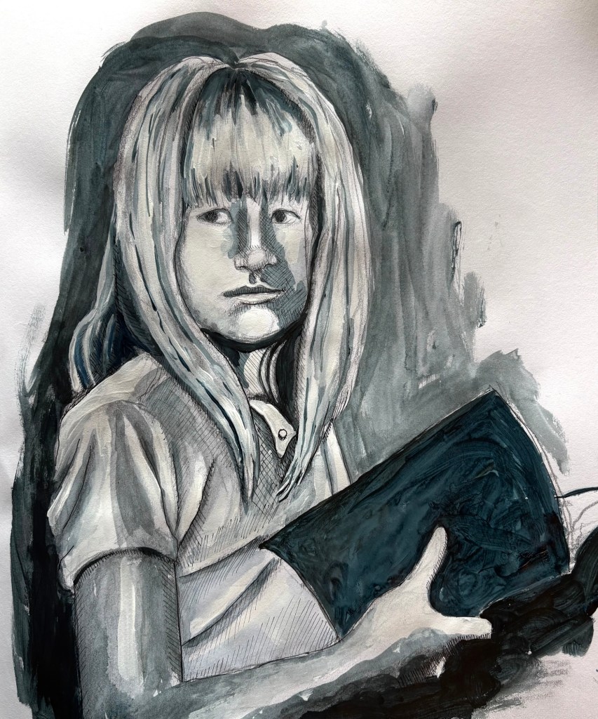 I’ve been working on illustrations for my book and I have two done. It’s going to be a combination of self portraits done in the mirror and self portraits from childhood photos. I have 85 poems so far so 15 more and the book will be written, it just needs illustrations.