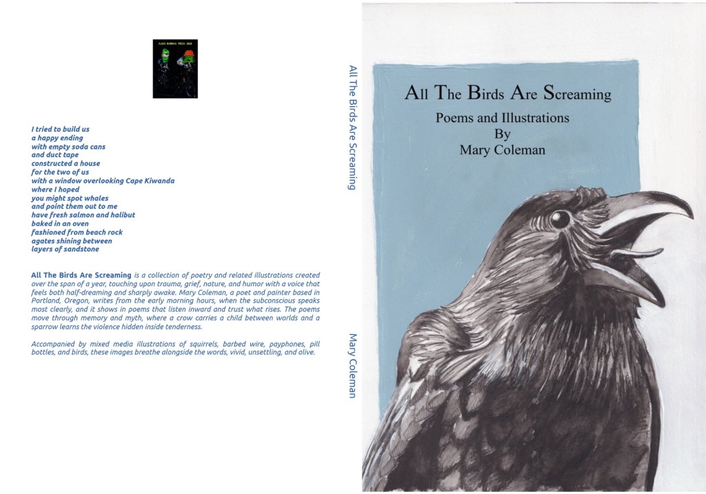 I am getting published by Alien Buddha Press! My first illustrated book of poetry will be out May 25. It will be available on Amazon. Here is what the cover, back, and spine will look like: